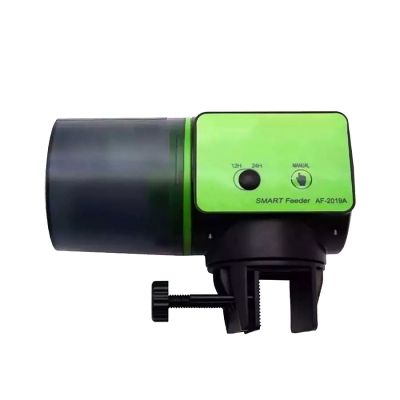 Автокормушка поможет вам организовать кормление рыбок, черепах и лягушек в автоматическом режиме. Можно настроить кормление до 4 раз в день, допускается использование ручного режима. Основа кормушки сделана из экологически чистого ударопрочного пластика, а емкость резервуара составляет 200мл. Предусмотрено несколько вариантов крепежа к аквариуму – липкой лентой или винтовым зажимом непосредственно к стеклу. При включении режима кормления кормушка поворачивается, и при этом совершенно бесшумно. Работает кормушка от 2 обычных пальчиковых батареек формата АА, и их заряд сохраняется не один день – все зависит от сложности настроек.