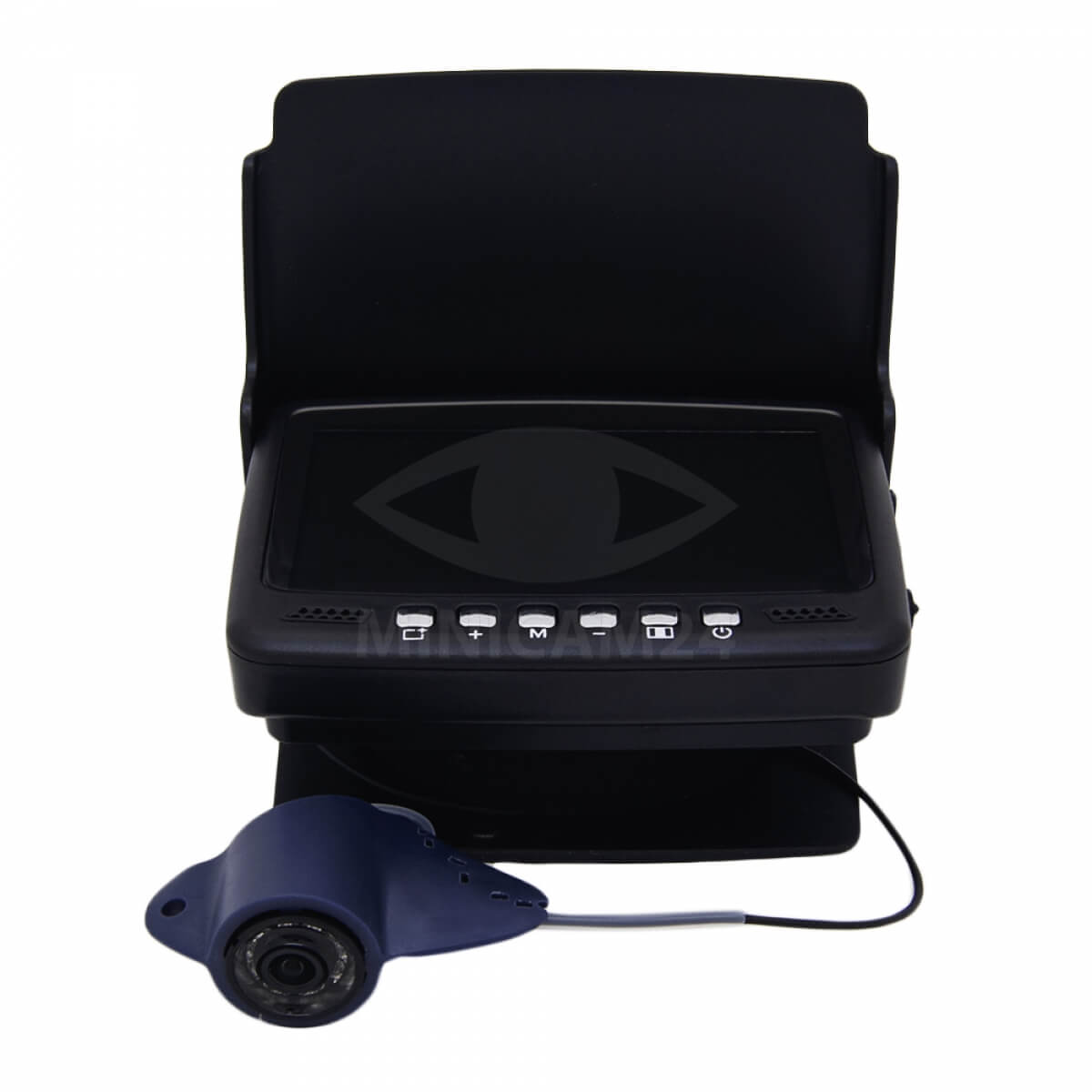 Удобная компактная подводная видеокамера с экраном 4,3 дюйма. В комплекте с камерой 15 метров прочного кабеля, усиленного кевларовой нитью. Для условий недостаточной освещенности в камеру вмонтированы 8 инфракрасных светодиодов подсветки. Угол обзора камеры составляет 120 градусов, что дает большой охват пространства под лункой и вокруг нее. Литий-ионная батарея работает автономно не менее 5-7 часов.